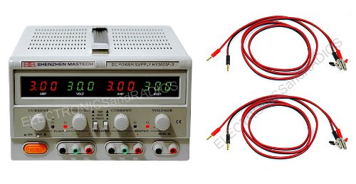 Buy Now! HY3003F-3 0-30V 0-3A Linear Triple DC Power Supply, Bright Red and Green LED Meters with 2 x 6 Feet Heavy Duty Test Lead Cables